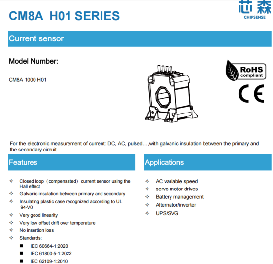Taking CHIPSENSE CM8A H01 series current sensor as an example, its core technical parameters are as follows: