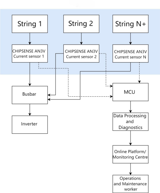 In terms of monitoring, the precise and real-time monitoring of each string's current serves as an effective means for operations and maintenance personnel to swiftly identify anomalies such as string shading, hot spots, performance degradation, or wiring faults. CHIPSENSE current sensor also involve in it.