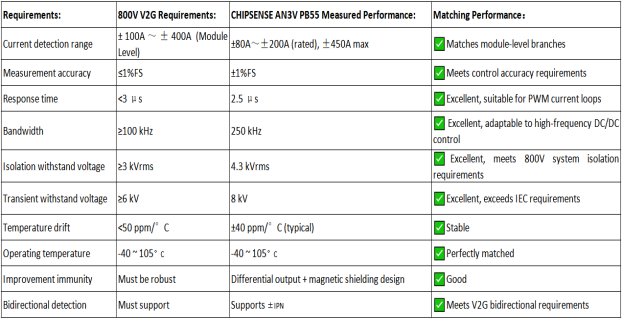 ±1%FS accuracy and low temperature drift, ensuring current consistency in both G2V and V2G directions;