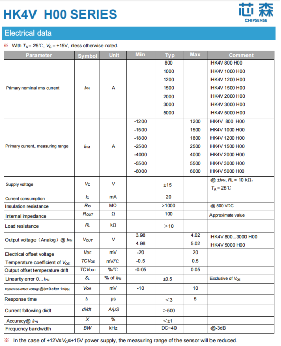 The following is the CHIPSENSE HK4V H00 series current sensor.