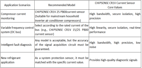 For instance, if the new national standard requires air conditioning energy efficiency to be upgraded to Level 1, the current monitoring scheme lacks accuracy, making it difficult to meet the energy efficiency ratio standard. In terms of intelligence, air conditioning systems need to monitor current in real time to enable fault prediction and dynamic adjustment. However, sensors/current transformers have slow response times and cannot meet these requirements. Newer refrigerants such as R32 and R290 require even higher accuracy in compressor current monitoring. CHIPSENSE current sensors will offer a good choice for customers.