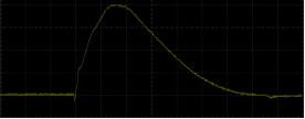 Blue line: Waveform output from CHIPSENSE CM4A current sensor, with a 47R plug-in resistor as the load.