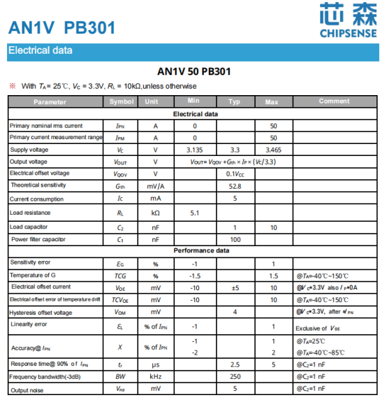CHIPSENSE AN1V PB301シリーズは、統合されたモノリシック設計と完全自動化された製造プロセスを特長とするオープンループホール効果電流センサーです。これらの特性により、優れた性能、低い温度ドリフト、優れた一貫性、高い安定性と信頼性が保証され、直流、交流およびパルス電流の精密測定に最適です。