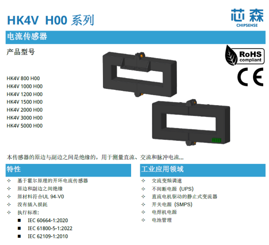 大型储能电站的直流母线监测:大电流量程系列(如芯森HKxV系列的200-5000A规格)能够满足1500V高压直流系统的电流监测需求。