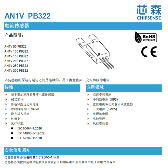 电气隔离与耐压:在800V高压系统中,传感器必须具备高隔离耐压能力,确保低压控制电路的安全。例如,芯森电子的AN3V系列传感器,隔离耐压高达 4.3kVrms,瞬态耐压可达 8kV。