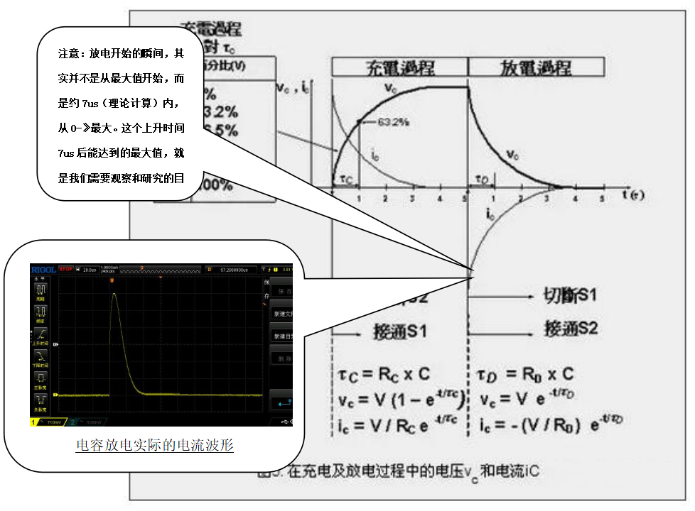图4为电容充电、放电的理论和放电电流的计算公式;