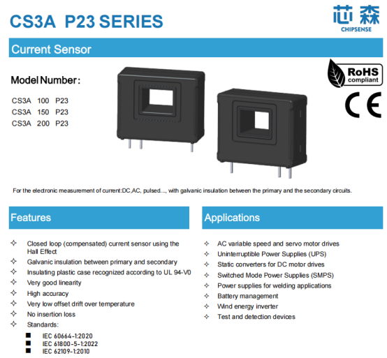 This is the CHIPSENSE CS3A PB23 current sensor as a reference example.