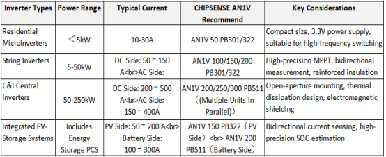 Conclusion: CHIPSENSE AN1V series current sensors strikes an optimal balance across five key dimensions—accuracy, dynamic response, insulation safety, reliability, and cost—making it particularly well-suited for PV inverter applications.