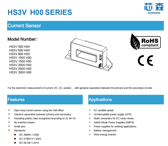 • Ultra-fast response, keeping up with dynamic changes: The response speed reaches the microsecond level, capturing even instantaneous changes in current. This perfectly matches the high-frequency adjustment requirements of devices like servo drives and frequency converters; CHIPSENSE current sensors are all fast-responding.