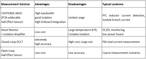This raises the question: Can small, PCB-welded Hall-effect current sensors like the CHIPSENSE AN3V current sensor be directly used for current detection in charging station PFC modules?