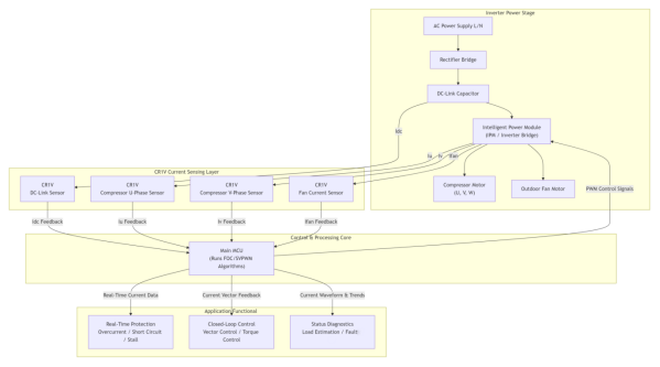 In variable frequency air conditioners (especially DC variable frequency air conditioners using permanent magnet synchronous motors), current monitoring is the cornerstone of vector control algorithms.
