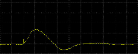 Blue line: Waveform output from CHIPSENSE CM4A current sensor, with a 47R plug-in resistor as the load.