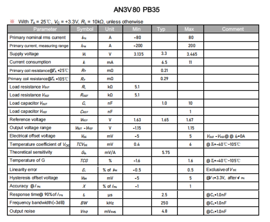 | パラメータ | AN3V PB35 | 伝統的な開ループセンサー |