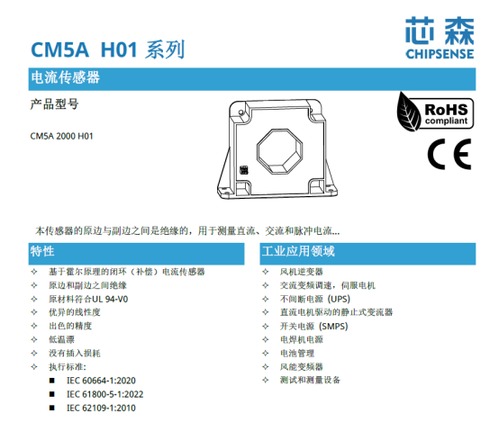 | DC 母线电流检测 | 200–2000 A | 大孔径霍尔(如 CM 系列) | 高电压、耐温度变化 |