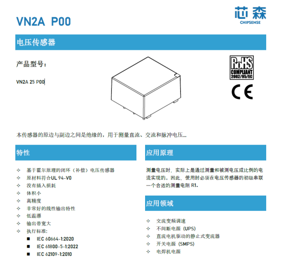 电压传感器主要作用是对电路中的电压进行测试和测量,因此电压传感器的应用是随着现代电子设备中的广泛应用而增多的。本文主要探讨芯森电子一款电压传感器VN2A 25 P00在不间断电源(UPS)中的应用。