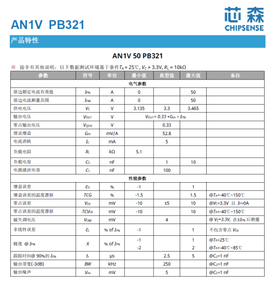 基于当前市场主流的高性能开环传感器(如AN1V系列规格),其核心参数如下:
