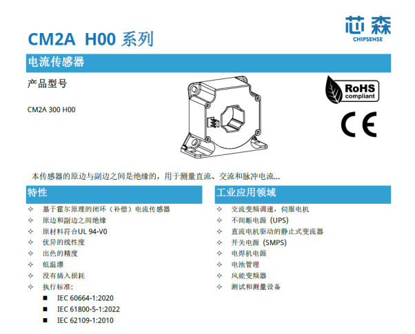 《电化学储能电站安全规程》中 “分级保护、故障录波” 的强制要求,对储能系统的电流监测提出了更高要求。在 2MWh 储能柜的应用场景中,CM2A 300 H00 电流传感器通过其技术特性,在直流侧 200A~300A 母排的安全防护中发挥着重要作用。
