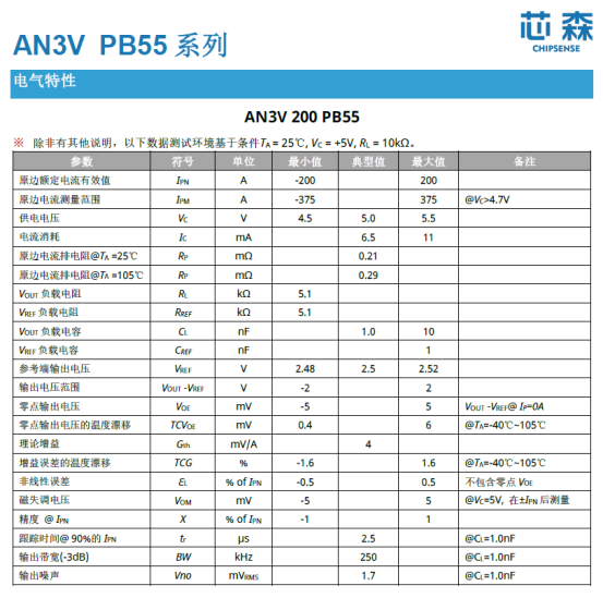 电气隔离与耐压:在800V高压系统中,传感器必须具备高隔离耐压能力,确保低压控制电路的安全。例如,芯森电子的AN3V系列传感器,隔离耐压高达 4.3kVrms,瞬态耐压可达 8kV。