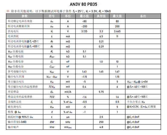 | 参数 | AN3V PB35 | 传统开环传感器 |