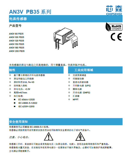 从表中得知在汇流箱中精度要求并不高,芯森电子具有±1%精度的AN3V足以满足相关应用。
